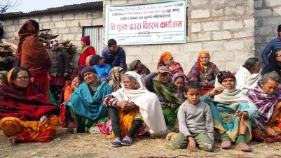 काठमाण्डाै,०७२,माघ १४/ नयाँ शक्ती नेपाल र सिन्धुपाल्चोक सेवा समाज नेपालको संयुक्त प्रयासमा दाउरा बीतरण ।