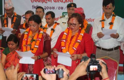 मुख्य निर्वाचन अधिकृतको कार्यालयद्वारा आयोजित कार्यक्रममा मुख्य निर्वाचन अधिकृत कविप्रसाद न्यौपानेले प्रमुख रेणु दाहाल, उपप्रमुख पार्वती शाह र वडा अध्यक्षलाई शपथ गराउनु भएको थियो । सोही अवसरमा प्रमुख दाहालले वडा सदस्यहरुलाई शपथ गराउनु भएको हो ।